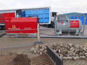Vorige week hebben we bij een klant de volledige voedingsvoorziening overgenomen met behulp van een krachtig aggregaat van Bredenoord. Zo blijft alles draaien en kan het werk gewoon doorgaan.